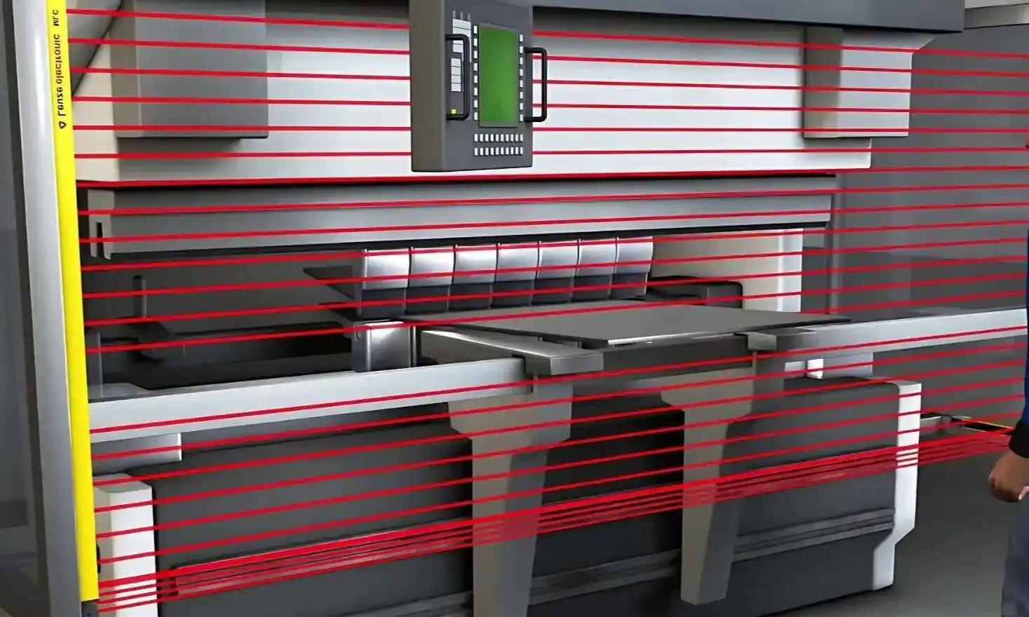 プレス、ロボット、コンベアの切込みの前に安全ライトカーテンを設置する場合、単にセンサーを設置するだけではありません。.