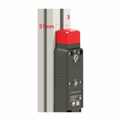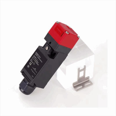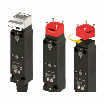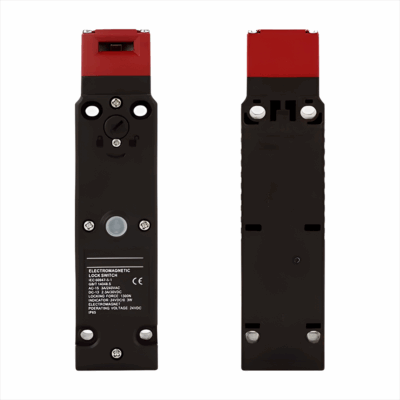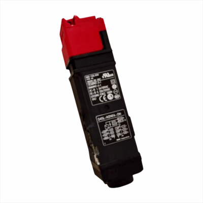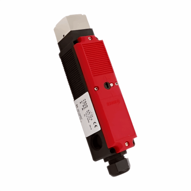 This heavy-duty safety interlock switch is designed for high-risk machinery and large access points. It features a robust, key-operated locking mechanism to ensure dangerous equipment cannot operate unless the guard is fully secured, providing maximum personnel protection.